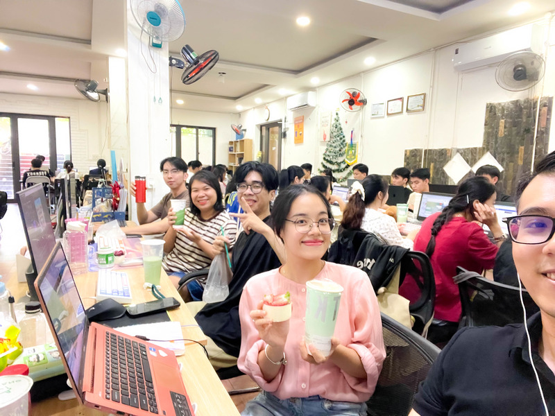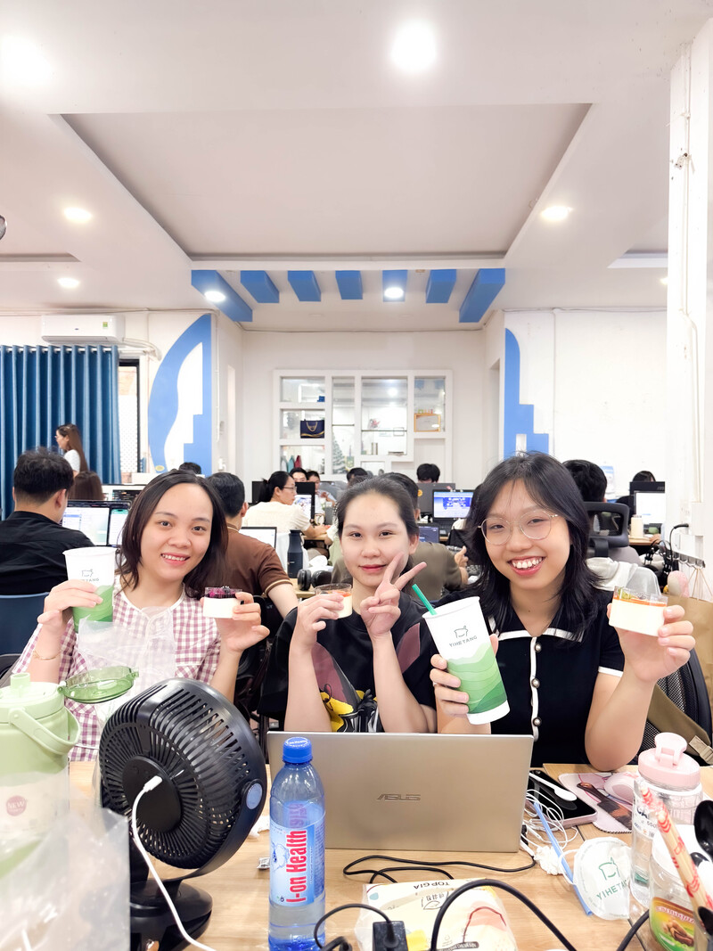 Buổi chiều, các anh trai OHI lại tiếp tục gây bất ngờ bằng một món quà tinh tế: mỗi chị em nhận được một ly nước Yihetang cùng chiếc bánh panna cotta béo ngậy. Kèm theo đó là những lời chúc dễ thương và chân thành, khiến ai nấy đều cảm thấy ấm lòng và hạnh phúc.