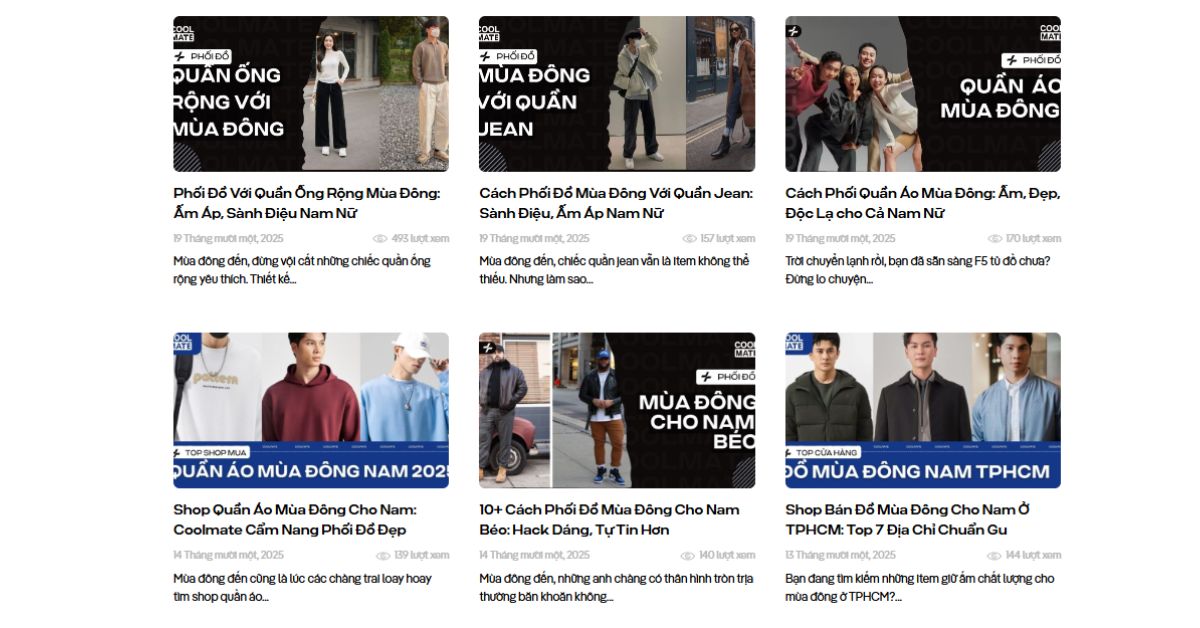 Coolmate xây dựng hàng trăm bài blog về thời trang nam, giúp giải quyết các vấn đề mà khách hàng thường gặp như: chọn size, phối đồ, giặt quần áo. Nhờ nội dung giá trị, thương hiệu thu hút nhiều traffic tự nhiên và trở thành cái tên quen thuộc trong cộng đồng nam giới.